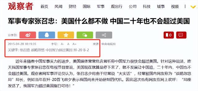 就连张召忠教授,在谈及中美军事实力时,也曾表示:
